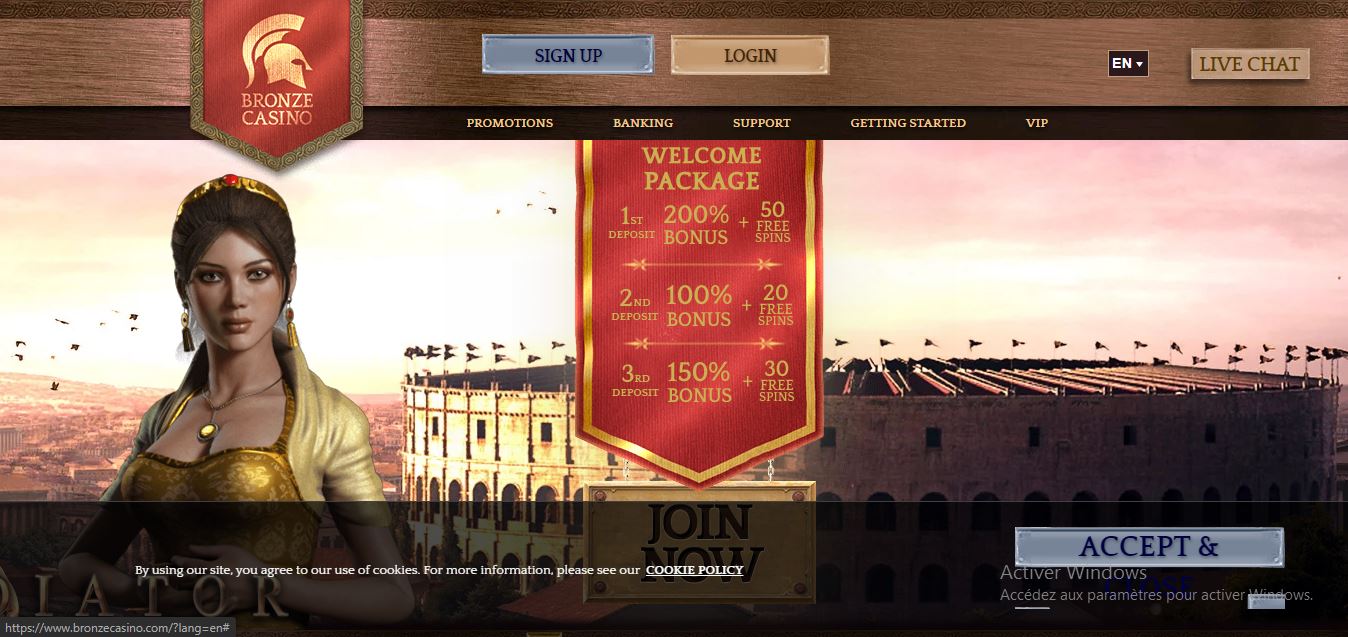 Cominciamo con il bonus di benvenuto. Questo viene offerto non appena un giocatore si unisce al casinò e ti consente di muovere i primi passi senza necessariamente spendere troppi soldi. Casino Bronze offre 50 giri gratuiti e il 200% sul deposito. Nonostante sembri un buon bonus, ha delle condizioni di scommessa che sono davvero eccessive.